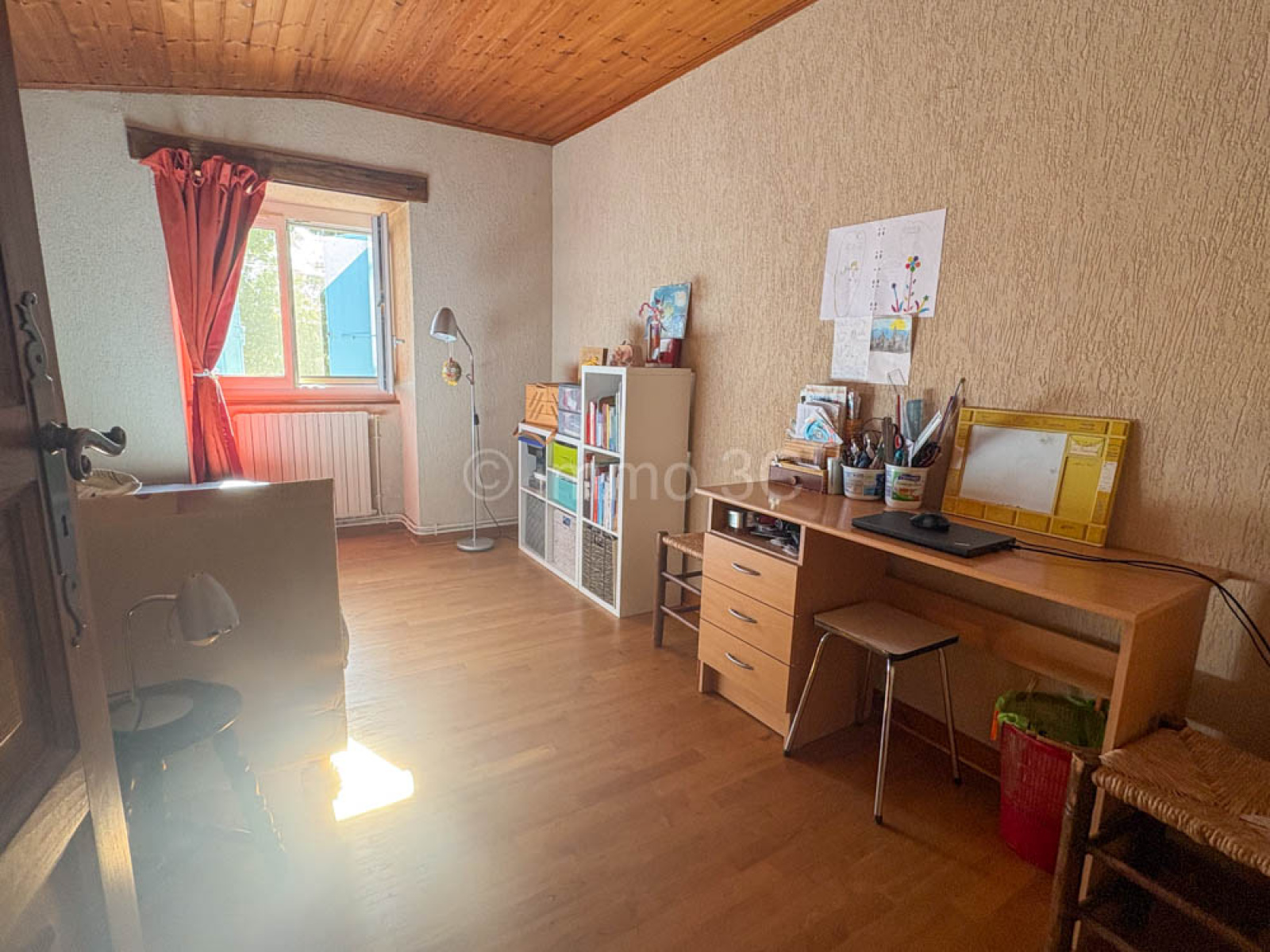 Au rez-de-chaussée, l’entrée s’ouvre sur une vaste cuisine / salle à manger de 37 m² avec tomettes au sol et cheminée équipée d’un poêle à granulés, idéale pour des moments chaleureux en famille.
